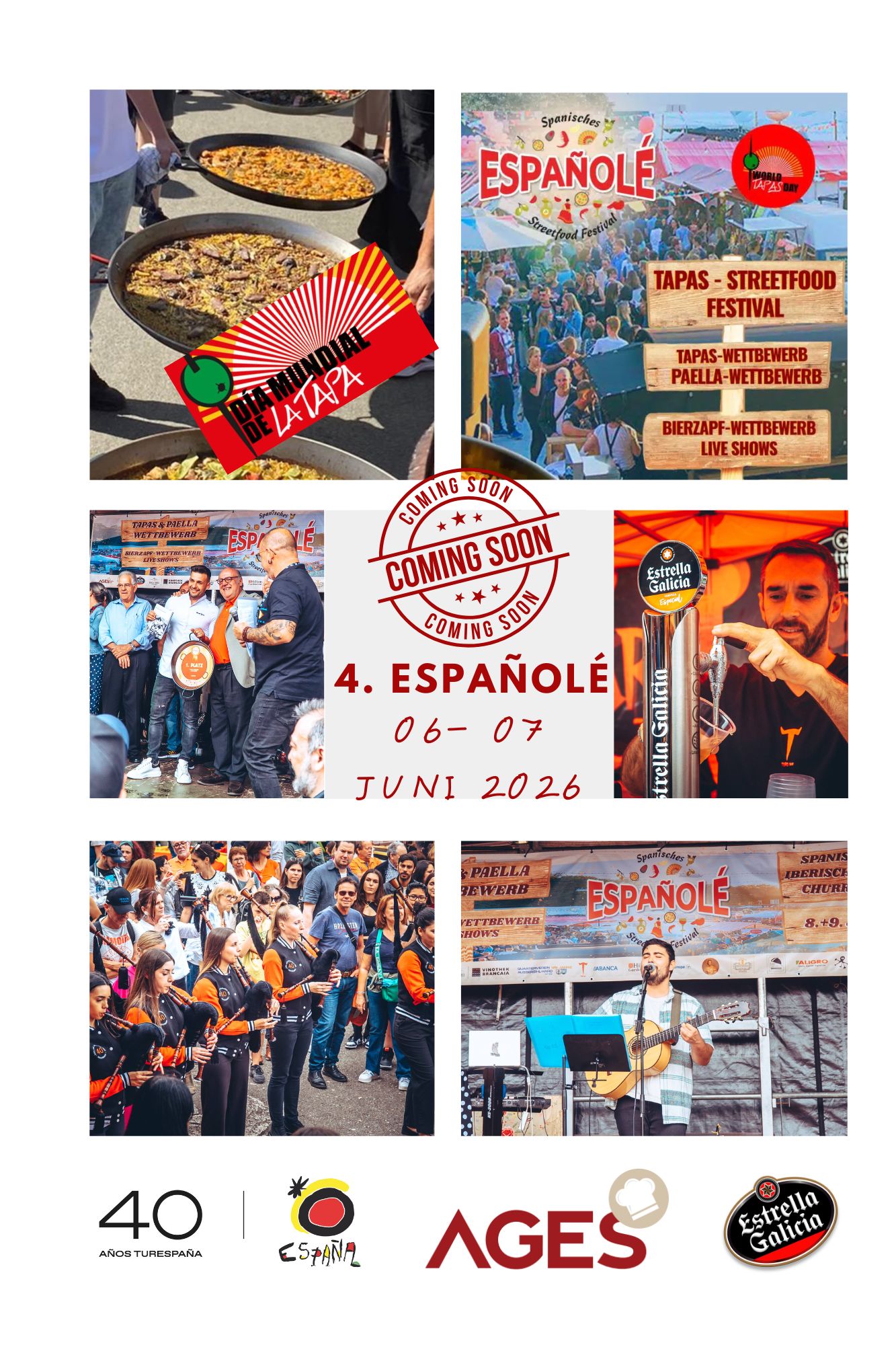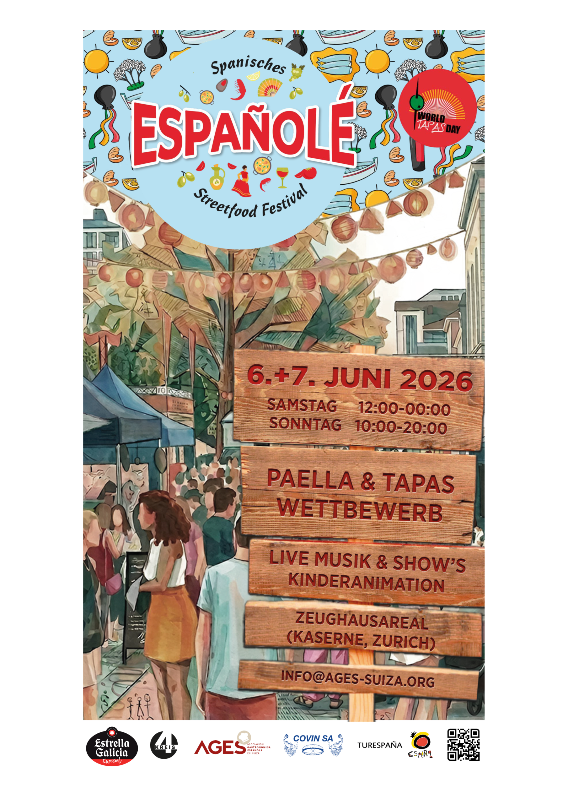 Es ist uns eine Freude, Euch das Jahr erneut das internationale Weltfestival für Tapas undPaella zu präsentieren, bei dem Ihr das Wochenende vom 06. + 07. Juni 2026 ein unvergessliches kulinarisches Erlebnis geniessen könnt. Unser Festival vereint das Beste der spanischen Küche und Getränken zusammen mit der spanischen Passion zu Musik und Tanz.